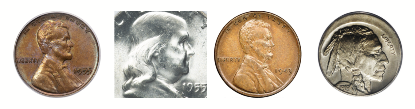 A Primer on How Coins are MadeCourtesy Peter JonesIn ancient times, engravers carved a dies of bronze and iron, hardened it, then used a hammer to strike the die on a planchet to make a coin. Engravers started using die punches around 800 CE to create uniform letters and save time making dies. By the mid 1400s their use was commonplace. By this time they also used punches with multiple letters or devices like someone's head (called a matrix or die punch), instead of re-engraving the same die multiple times. Hammered die coins were quick to produce. But the screw-press (first used in the London Mint in 1561 by Eloye Metrelle, a French moneyer) created much better looking coins. But it was more time consuming and they reverted to hammer-struck coins until Peter Blondeau (another French moneyer) restarted screw press coins in 1656 for Oliver Cromwell. By 1663, all British coins were struck with a screw press also called 'machine made,' as opposed to 'hammered'. When the first US Mint started in 1793, they used a screw press to strike coins, and a Castaing edging machine (invented in 1679) to create edges with letting and devices before striking. Later in the 1790s, the US Mint used punches of heads, eagles, etc., so they did not have to engrave the same die repeatedly. In 1836 the Second Philadelphia Mint opened with a new steam press with a fixed collar. As coin production increased, it became too tedious to create each die individually and they used a system of: WORKING HUB (relief) -> WORKING DIE (incuse) -> COIN (relief) Initially the US Mint used the reducing lathe (Janvier lathe) of outside medal makers, then got their own machine in 1906. Error coin collectors are well versed in the minting processing use a system called PDS: planchet, die, and striking. Each error e.g., a planchet clip, is unique and is not repeated. They involve the planchet or the striking process. Varieties are a result of die errors so are not unique e.g., 1955 double die cent. PlanchetsFirst planchets are punched out of correct thickness webs of metal. With increasing production in the 1990s, it became impractical to smelt metal in the middle of a city, so the mint then outsourced the production of planchets. Sometimes the planchet can be ripped along the edge with a curved, jagged, or straight clip. They may be the wrong metal (e.g. copper cent planchet struck with a dime design), or have inclusions, laminations and imperfections. Planchets are then put into an upsetting machine which raised the rims, making them into a 'Type 2 Planchet'. The 1836 steam press used a fixed collar to hold the planchet in place during striking, so edge designs had to be paced with a Castaing machine using edge dies for reeding, designs or lettering. In 1907, they started using segmented collar dies on the Saint Garden double eagle, allowing all-in-one striking of the obverse, reverse, and edge. Thus, planchets before 1907 required edging with designs before being struck by the steam press. DiesDies are engraved, punched, or squeezed into softened steel, then hardened. You soften steel by heating it until red hot, keeping it there for a few minutes to an hour depending on the size, then cooling it slowly by burying it in sand or ashes. You harden steel by heating it until red hot then cooling it quickly (quenching) with water, oil or brine. A US quarter working hub produces 50-200 working dies, each of which can strike 100,000 to 200,000 coins (5 million to 40 million coins). But to produce 500,000,000 quarters, you need to add to the working hun and die system: MASTER HUB (in relief) -> MASTER DIE (incuse) -> WORKING HUB (relief) -> WORKING DIE (incuse) -> COIN The master hub was made from a plaster or clay model, later a metallic galvano, using a reducing lathe. By 1991 all US dies for circulating coins had the mintmark included in the die, rather than punching a mint mark into each die. Also they had single squeeze from the hub not two. Thus, misaligned double squeezes of hubs into a working die (e.g., 1955 double die cent) ceased to exist. Striking processThe striking process allows for the greatest number of errors (name of the error is in parentheses) Planchet may not be restricted by the collar (broad strike) Planchet may be half out of the striking area (10% to 90% off-center strike) Planchet may stick to the die giving the next planchet a reverse on one side and a mirror reverse on the other side (brockage) If that same planchet keeps sticking to one die, it may become cup shaped over time (die cap) Same planchet may remain in the die but move (double strike) Wrong planchet may be struck (planchet error), e.g., 1943 bronze cent was supposed to be steel planchet Planchet may be poorly struck, caused by die trial, too thin planchet, insufficient pressure, or grease or tape in the way, etc. Planchet may be struck with an inclusion between (inclusion), creating a divot in the coin, or (filled die error) As die wears, strike may become mushy, but this is not considered a mint error Die cracks may cause line of raised metal on the coin (die crack) A bit of metal that falls off a die (cud on edge, or die break in center of coin) As the coin is pushed off the die, (machine doubling) can cause appearance of double struck numbers or letters As dies age and flow lines become too coarse, they may polish the surfaces, this made the 3-legged buffalo error If no planchet comes between the dies, the dies imprint each other creating (die clash) errors e.g., bugs bunny Franklin half